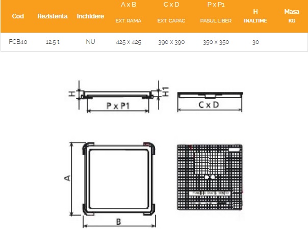 Clasa de utilizare – B125 rezistenta minima admisa 12.5 tone, conform EN 124-1993.