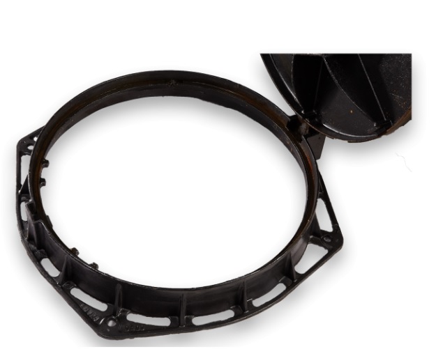 Tip – capac rotund prevazut cu balama, sistem autoblocare, închizator, garnitura. Rama este prevazuta cu o imbinare izolata fonic prin garnitura de cauciuc.