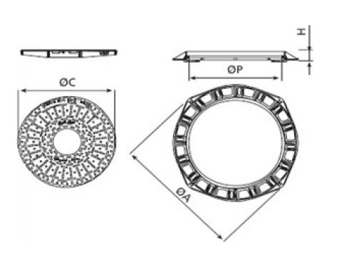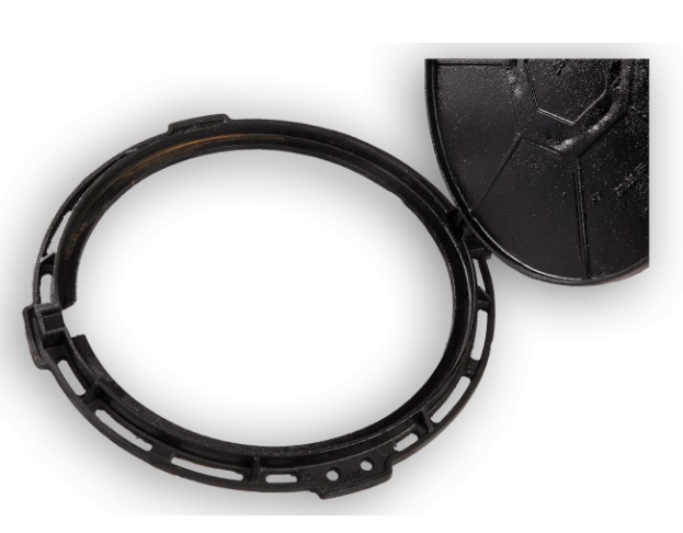 Tip – capac rotund prevazut cu balama, sistem autoblocare, inchizator, garnitura, permite o deschidere la 130 grade, suprafata metalica antiderapanta. Rama este prevazuta cu o îmbinare izolata fonic prin garnitura de cauciuc.