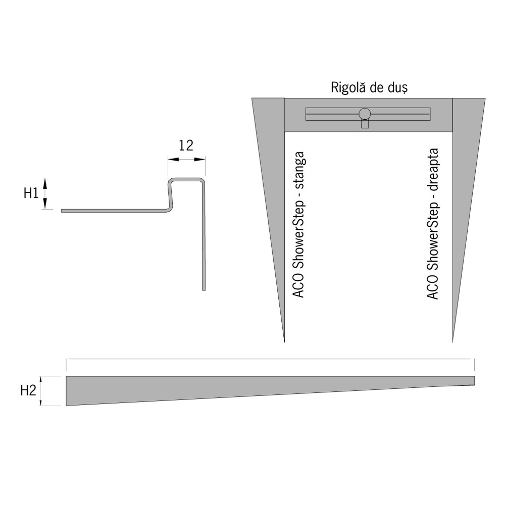 Asigurarea unor pante corecte in sala de baie a reprezentat intotdeauna o provocare dificila pentru instalatori. ACO ShowerStep este produsul care reuseste sa simplifice acest aspect. Pardoseala baii este perfect dreapta, doar in dreptul rigolei de dus amplasate la perete se formeaza o panta care asigura curgerea apei din dus catre rigola. Diferenta de nivel progresiva care apare intre pardoseala baii si panta suprafetei ude din zona dusului este compensata cu profilele ACO ShowerStep.Asigura inchiderea verticala a diferentei de nivel din zona dusuluiNu este necesara instalarea de pante in toata baiaAsigura suprafata de asezare pentru un perete de sticla cu grosimea maxima de 12mmLungimea poate fi ajustata prin taierea profiluluiPanta prefabricata de 2%