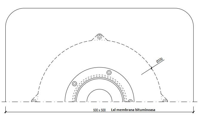 Receptor cu perete dublu cu flanșă din membrană bituminoasă, parafrunzar și ieșire verticală DN160 mm