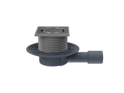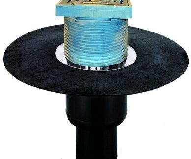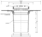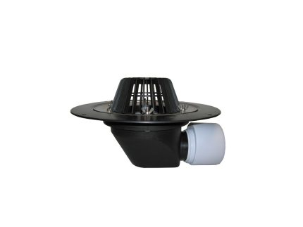 Receptor terasă TOPWET cu flanșă din membrană bituminoasă, coș de protecție și ieșire verticală. Construcție din poliamida PA6. Înălțime totală mică. Potrivite pentru drenarea suprafețelor mici.